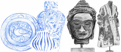 In January, we meet to draw at the Wellcome Collection, at 183 Euston Road. The Wellcome Collection offers exhibitions on science and medicine, and there is an extraordinary collection of objects related to the history of medicine of different cultures.